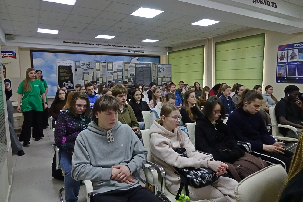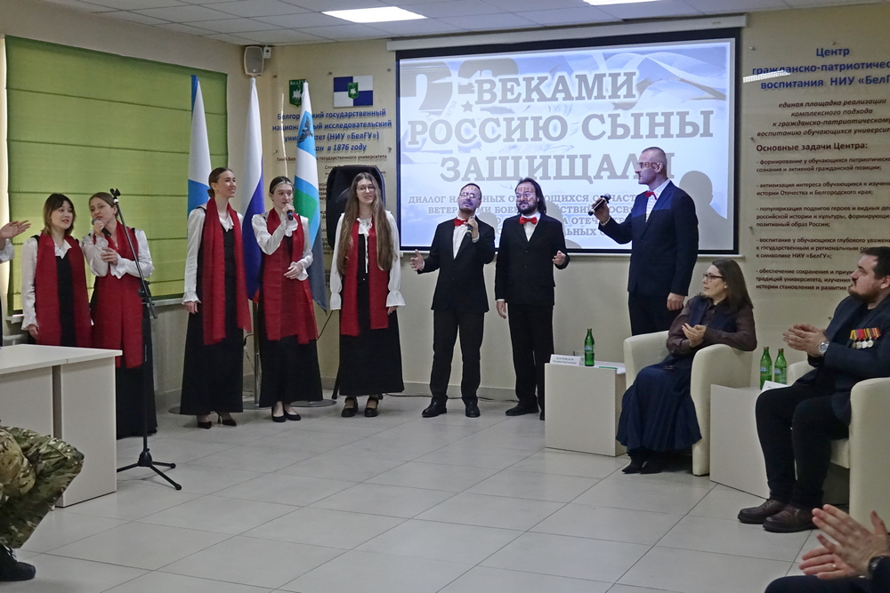 Встреча «Веками Россию сыны защищали» прошла в Центре гражданско-патриотического воспитания обучающихся НИУ «БелГУ». Мероприятие организовано Центром молодёжных инициатив департамента молодёжной политики и воспитательной деятельности и Научной библиотекой имени Н.Н. Страхова совместно с Профсоюзным комитетом НИУ «БелГУ» и Координационным центром ВПИТИПЭ.