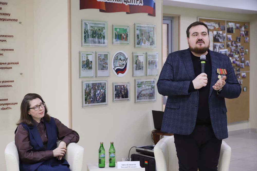 Мероприятие открылось с Гимна Российской Федерации в исполнении академического хора НИУ «БелГУ» под руководством Урузмага Танделова. С приветственным словом к гостям обратилась Евгения Карловская, которая отметила важность встречи молодых людей с действующими героями. Руководитель вуза подчеркнула, что в современных реалиях очень важно сохранить патриотизм у молодого поколения и не допустить искажения исторических фактов.