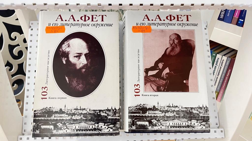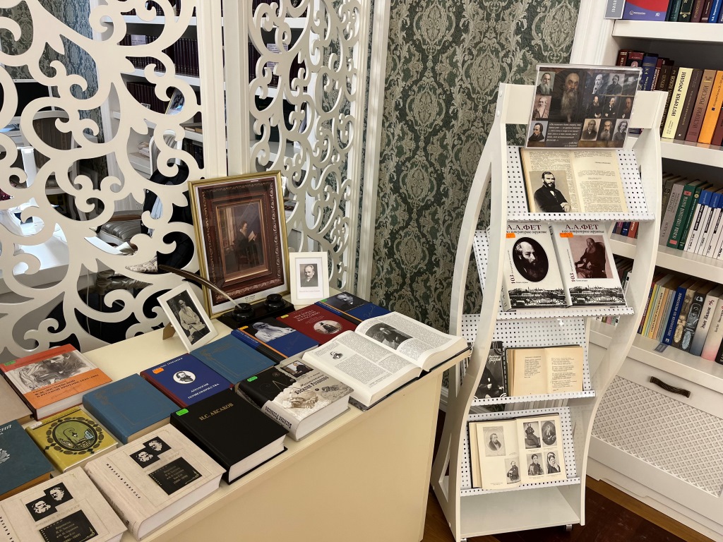 На выставке представлены двухтомное издание «А.А. Фет и его литературное окружение», основное содержание которого составляют письма, извлеченные из архивных источников и редкие книги.