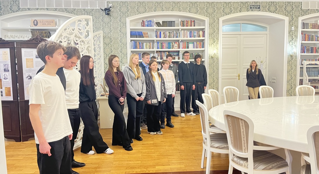 Ребят заинтересовали экспонаты библиотеки-музея, в том числе прижизненные издания Н.Н. Страхова, а также комментарии и пояснения экскурсовода. Школьники узнали, что Николай Страхов внёс значительный вклад в естественнонаучные дисциплины: защитил магистерскую диссертацию по зоологии, преподавал физику и математику и свободно ориентировался в ключевых открытиях своей эпохи в области химии, физики и астрономии.