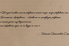 Особый шарм экспозиции придают каллиграфически выведенные перьевой ручкой название выставки и цитата философа: «Каждый человек может развиться только тогда, когда развивает сам себя». Этот художественный прием создает эффект погружения в атмосферу XIX столетия.